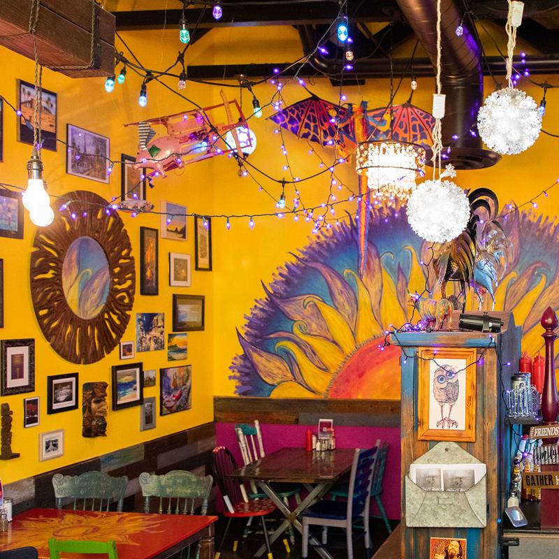 I wanted brunch on my day off and found the Violet Rooster. What an amazing little restaurant. The core is eclectic and beautiful. There are eight types of mimosas and amazing specialty cocktails. And the portions are huge. Everything was delicious and the wait staff was welcoming. I can't wait to come here again!